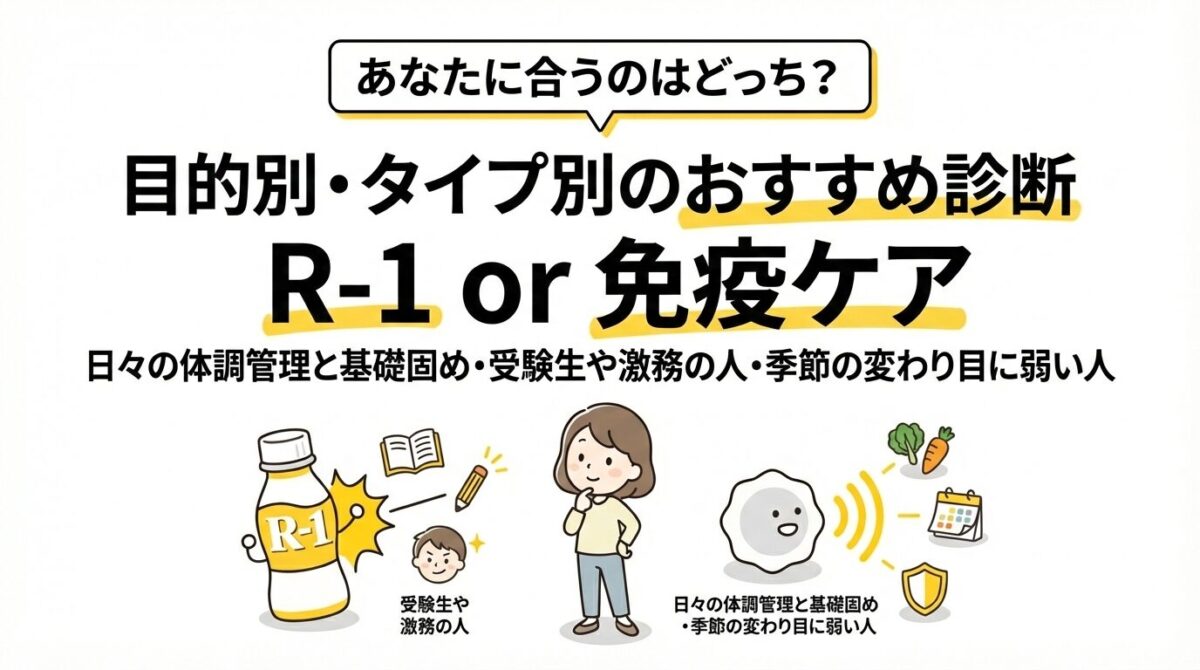 「直前はR-1、普段は免疫ケア」という使い分けも、プロフェッショナルな選択と言えるでしょう。